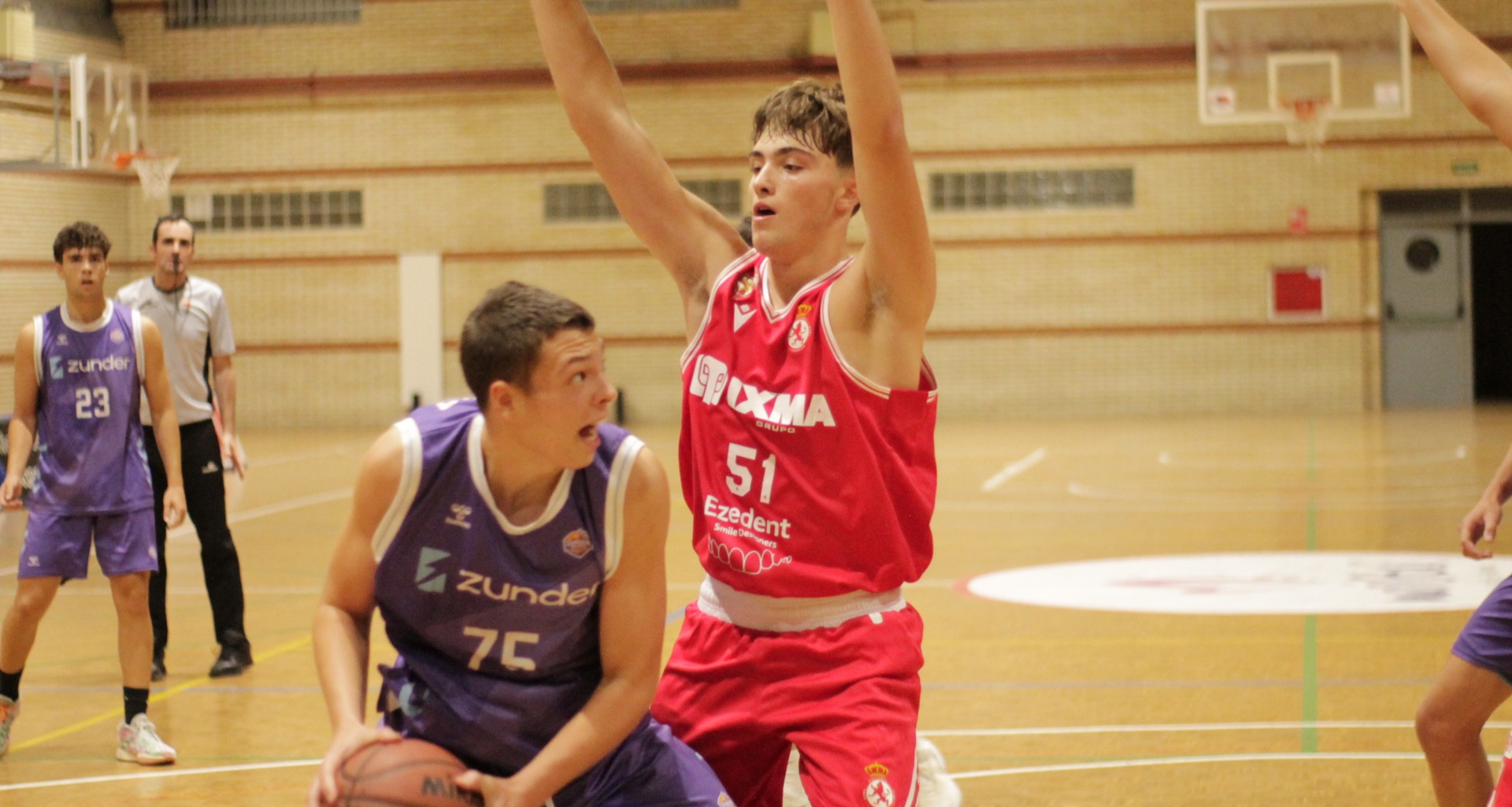 Victoria trabajada de los morados en un encuentro que fueron claramente de menos a más tras quitarse los nervios iniciales del debut en la competición. Ese arranque de encuentro en el que los locales se mostraban muy acelerados provocaba muchas pérdidas de balón que se traducía en un parcial de 2-11 que obliga al banquillo colegial a solicitar tiempo muerto. Una llamada al orden que daba inmediatamente sus frutos imponiendo los chicos del Adarsa Maristas su estilo de juego consiguiendo una renta de 13 puntos en el ecuador del encuentro.